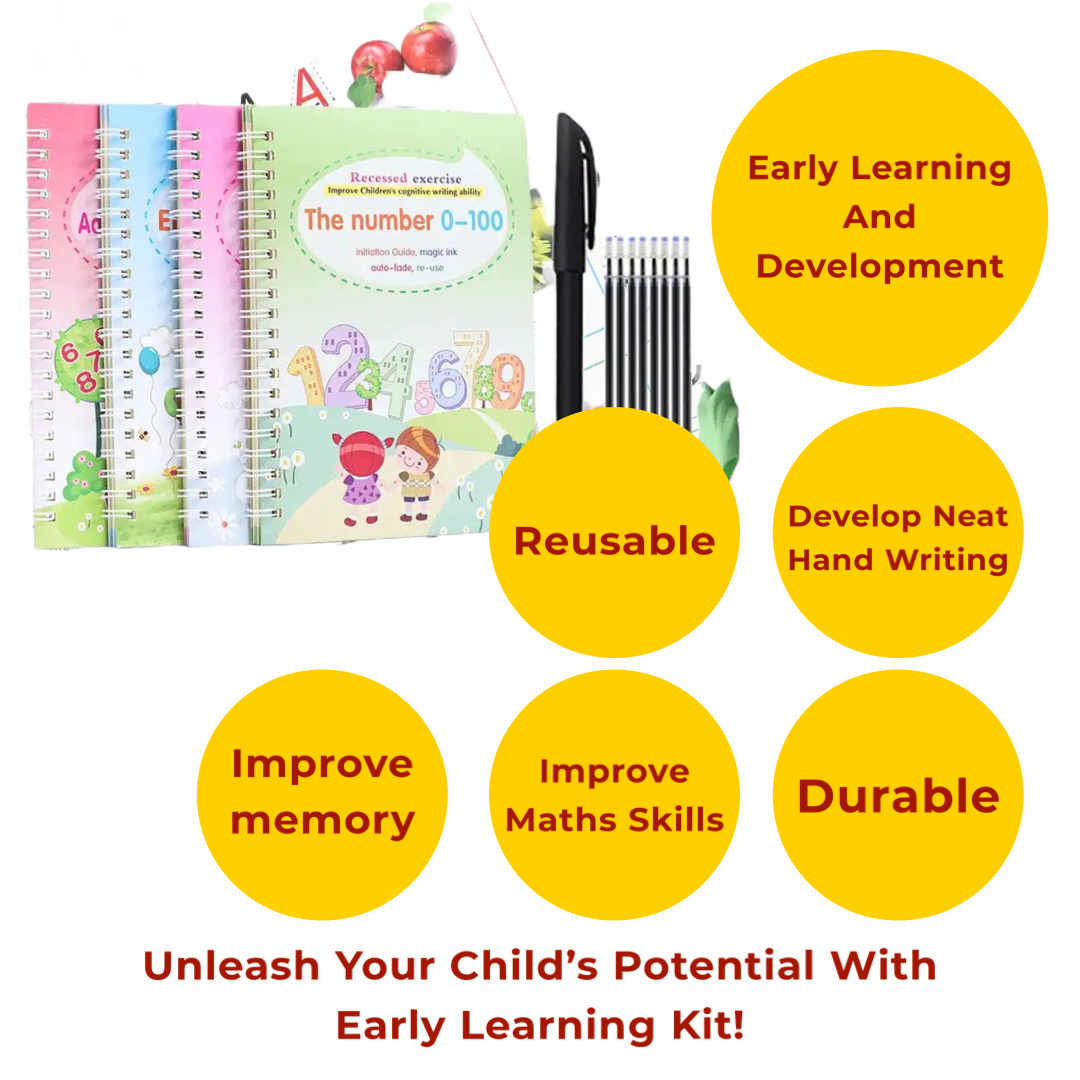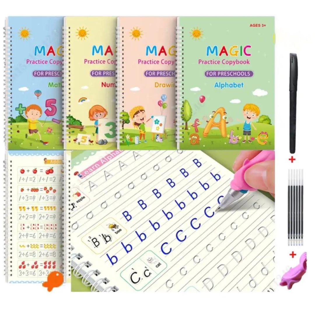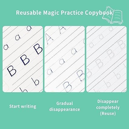 Our magic copybook is not like the regular ones that you write and dispose of. A few minutes after writing in this magic copybook with a magic pen, the ink disappears, thus allowing your children to practice over and over again at no extra cost.